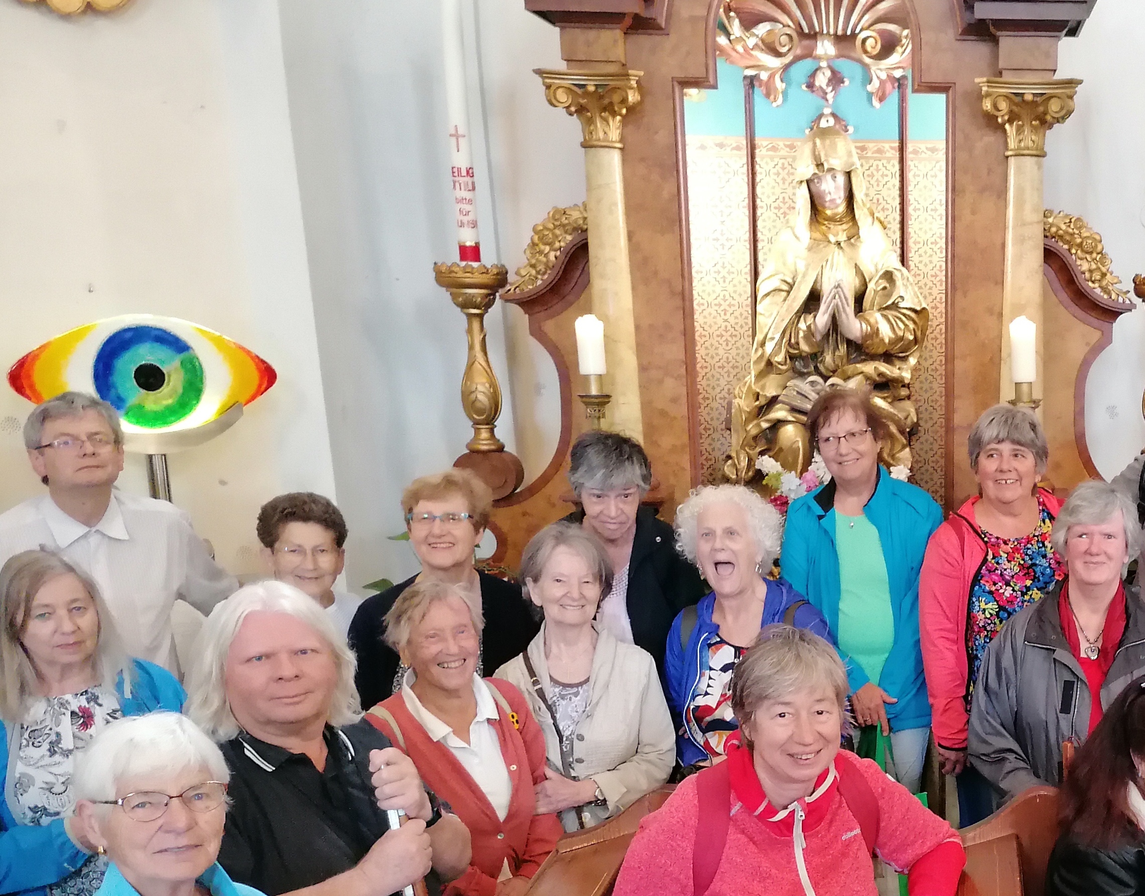 Anschließend erklärte Hermine Mittermair die Geschichte der Wallfahrtskirche und zur heiligen Ottilie, die Schutzpatronin der Sehbehinderten und Blinden.